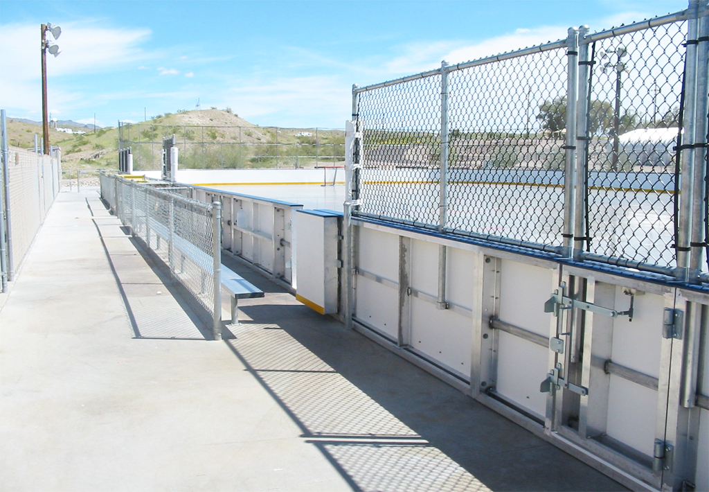 Our Inline LEGACY Pro™ Aluminum dasher boards are the ultimate choice for both outdoor and indoor inline hockey. This system features a 5-inch welded aluminum frame that stands up to any level of play. Available with either posted clear shielding or chain link fencing.