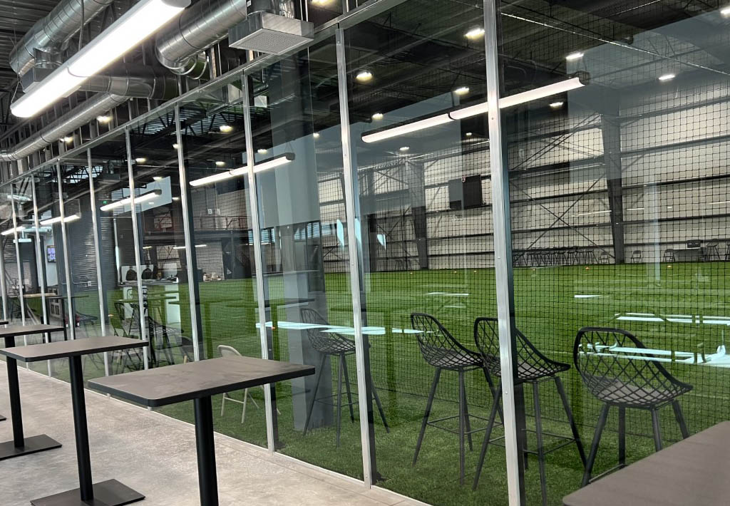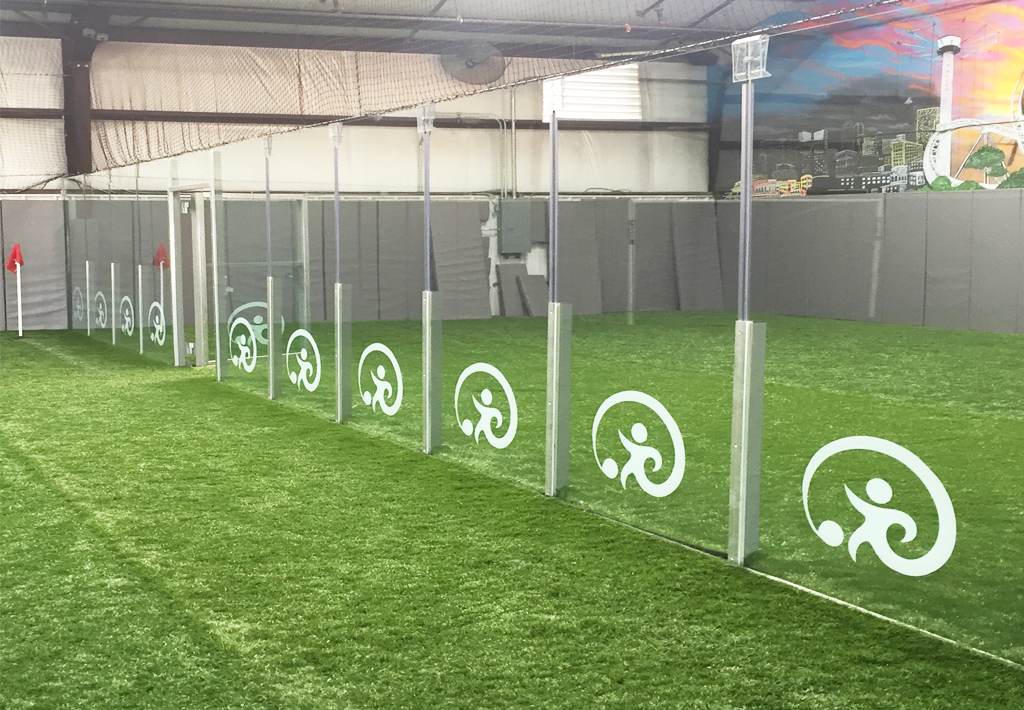 Containment systems for soccer and lacrosse fields, as well as multi-sport complexes. Clear tempered glass, acrylic, or durable white laminate panels supported with power coated steel supports.  Stands up to repetitive impact, and provides a durable, cleanable surface.
