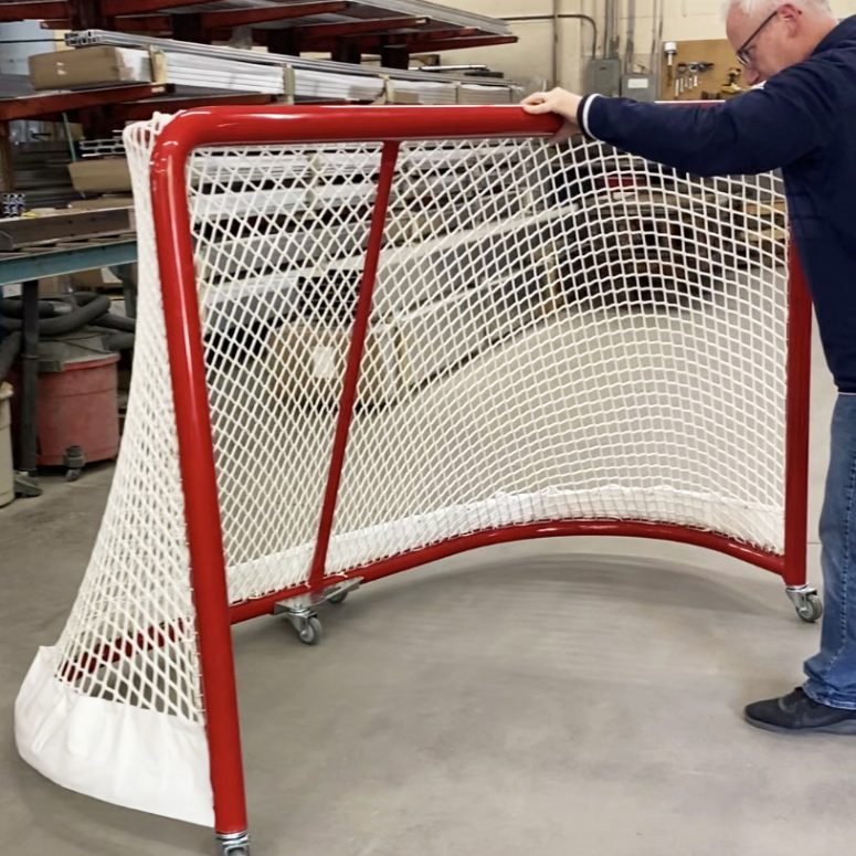 Ice Rink Managers will love the NEW Pro Net Caddie! Specifically designed to eliminate heavy goal lifting, minimizing the risk of work accidents and injury. Transport and store your goals right in the caddie, reducing rust and damage to your bottom bar and pad. This easy to use, 3-piece unit features: Twin aluminum caster pegs and a steel bottom bar holder with 3” swivel casters. Holder is equipped with easy to grip handle and caster peg holes to keep your Caddie all in one place. Affordably priced to outfit all your goals. Rink Systems Innovation!