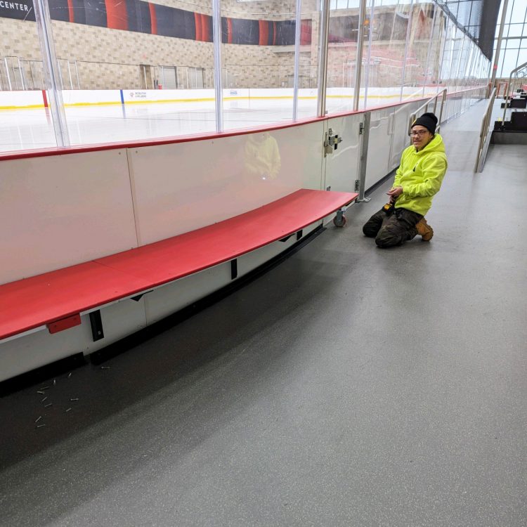 Rink Side Benches provide an additional level of seating and convenience around the rink. It’s a perfect location to lace up those skates or take a quick break off the ice. The 20″ straight or curved bench tops are constructed with 3/4″ HD polyethylene and mounted on zinc plated steel angle supports. Custom sizes and colors are available. Install on your own or we can can help!