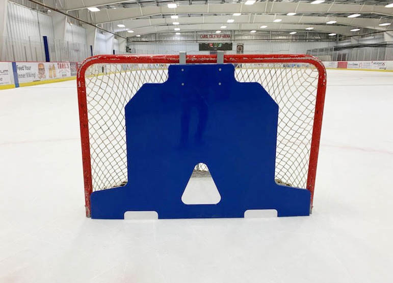 Train Smarter! Sharpen your aim with RSI’s new heavy-duty professional grade Sharp Shooter. This shooter tutor is a great addition for skills training; improving accuracy, reducing puck retrieval and saving you time. Built from one solid piece of 1/2″ high density polyethylene along with two galvanized steel hooks, you can be confident of it’s secure hold to withstand the hardest shots. Fits junior 3′ x 4′ goal frame. Available in standard colors of blue and red. Other colors available upon request.