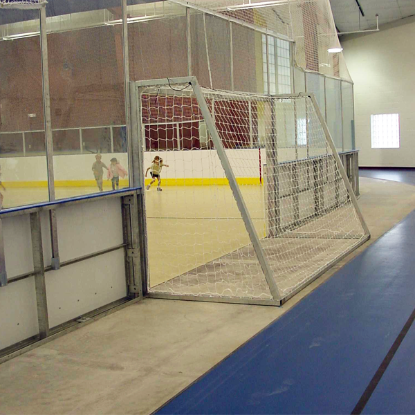 Create more revenue for your rink by adding soccer to the venue. Constructed of 4” x 4” square aluminum framework. Standard size is 12’ wide x 6’6” high x 5’ deep. Simply remove the two center dasher board panels on each end and insert goals. Filler panels to match your existing design are also available. Includes 3mm netting.