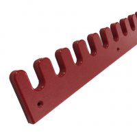 Standard 16″ x 48″, 3/4″ solid HD polyethylene. Rack option or easy to mount stand alone finger bar. Great organizer for locker rooms and player boxes. Custom sizing and a variety of colors are available.